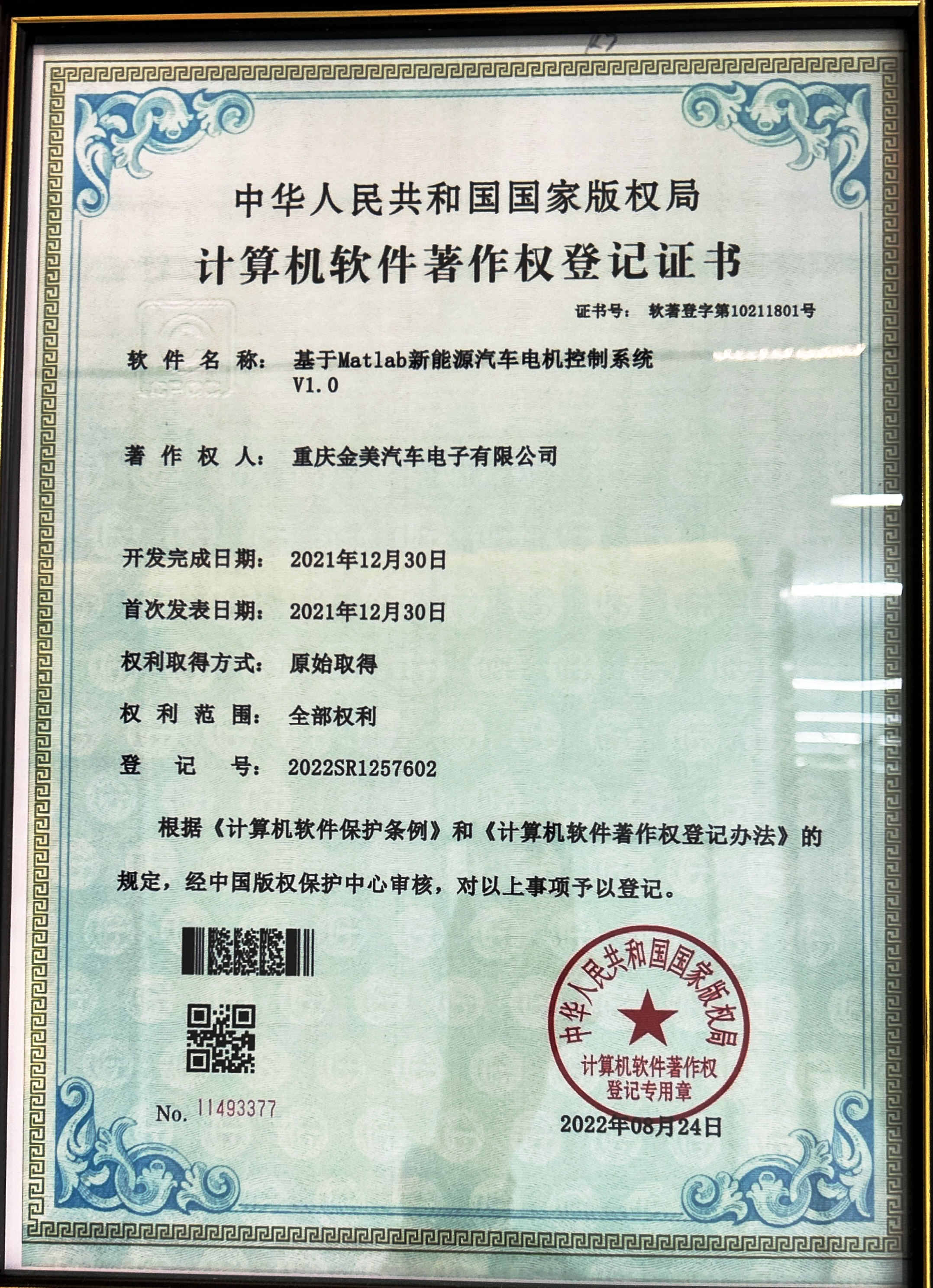 金美汽车通过了IATF16949、ISO45001、ISO14000、ISO27001、ISO17025、CMMI3认证。;获得国家“高新技术企业”、“重庆市专精特新企业”、“重庆市重点新产品”、“重庆市瞪羚企业”等证书。